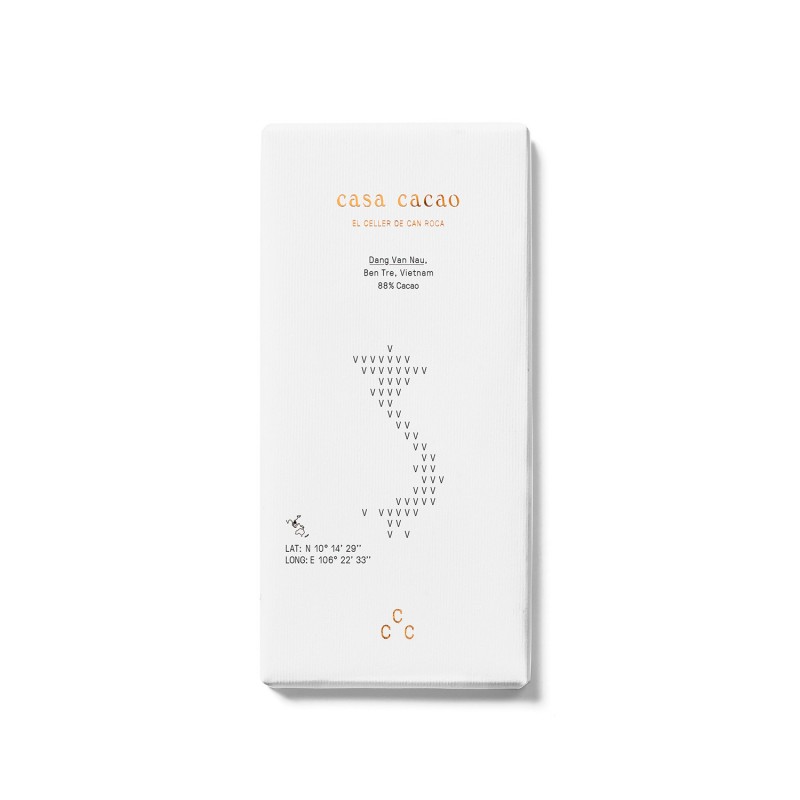 Cacau procedent de la regió de Bến Tre, al delta del Mekong, on es cultiva entre canals i cocoters, aportant notes intenses i afruitades.