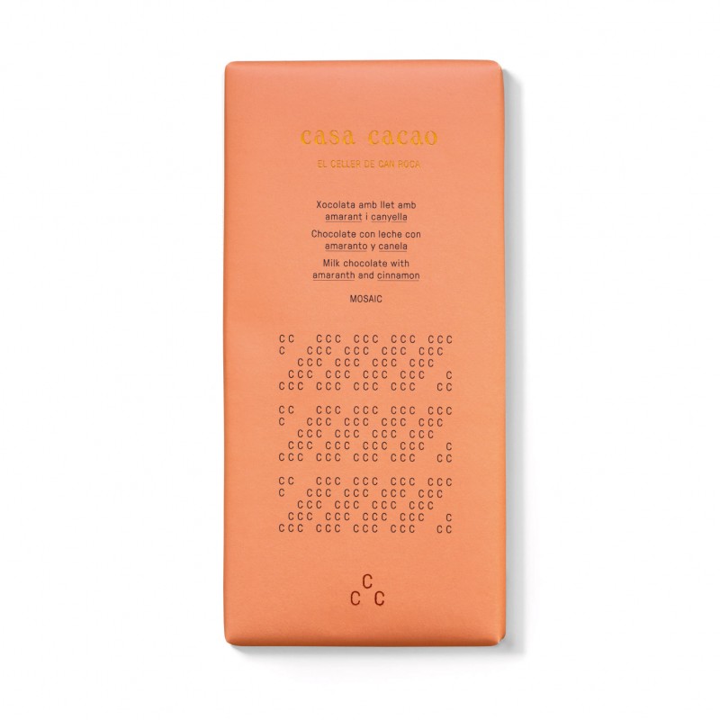 Milk chocolate bar (minimum 50% cocoa) with puffed amaranth and cinnamon.