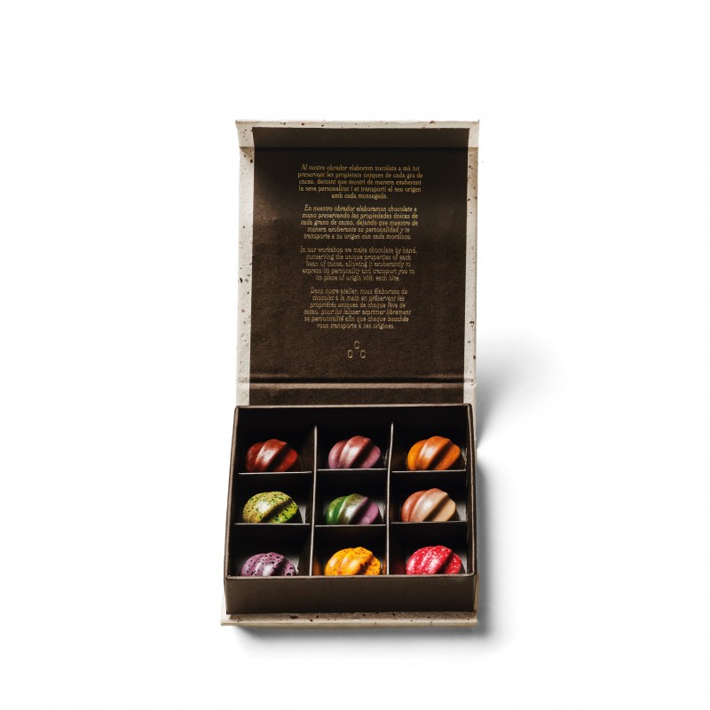 Coffret de 9 bonbons présenté dans une boîte spéciale de Noël.